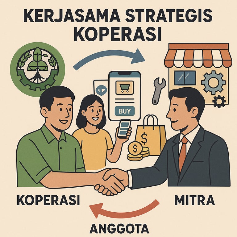 Koperasi memiliki peran penting dalam memfasilitasi transaksi anggotanya dengan menjalin kerjasama strategis dengan pihak ketiga. Kerjasama ini bertujuan untuk menciptakan kemudahan dan kenyamanan bagi anggota dalam melakukan kegiatan ekonomi, seperti pembelian produk, penyediaan layanan, serta akses ke sumber daya yang dibutuhkan. Melalui kolaborasi dengan berbagai mitra, koperasi dapat menawarkan layanan yang lebih beragam dan meningkatkan daya saing anggotanya. Dengan adanya sistem kemitraan ini, anggota diharapkan dapat merasakan manfaat yang lebih besar, termasuk penawaran harga yang lebih baik dan aksesibilitas yang lebih tinggi terhadap produk dan layanan. Koperasi pun berkomitmen untuk terus mengembangkan jalinan kerjasama yang saling menguntungkan, demi kesejahteraan bersama.