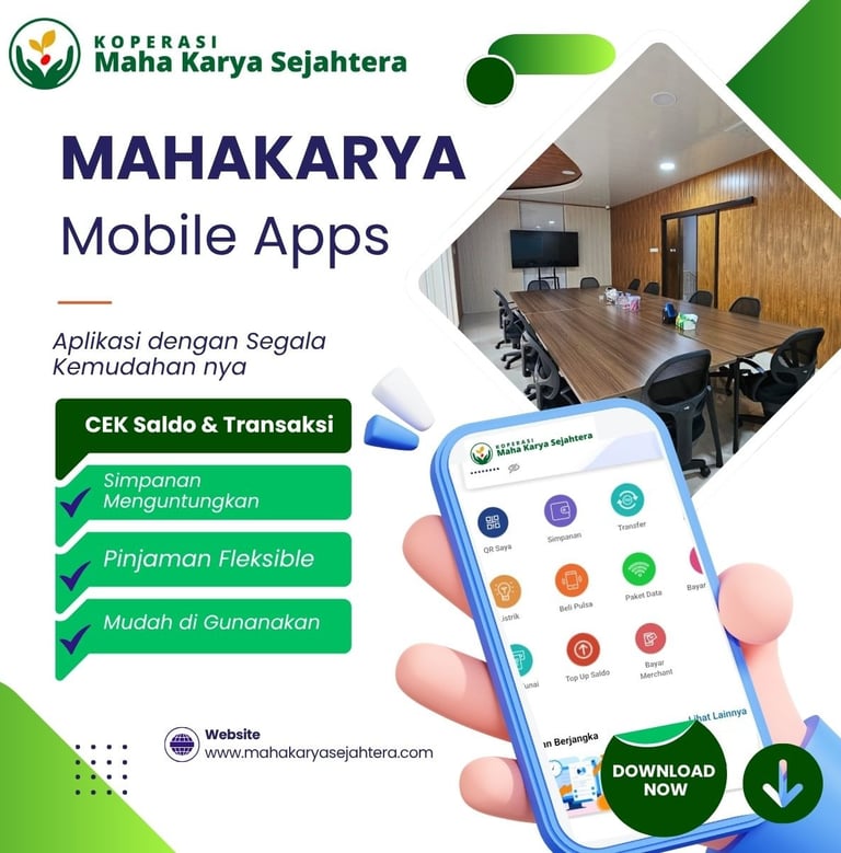 Mahakarya Sejahtera merupakan koperasi simpan pinjam yang menawarkan layanan terintegrasi melalui aplikasi mobile. Dengan kemudahan ini, anggota koperasi dapat mengakses berbagai fitur layanan keuangan kapan saja dan di mana saja. Aplikasi ini dirancang untuk mempermudah proses simpan, pinjam, dan mengelola keuangan pribadi. Selain itu, Mahakarya Sejahtera juga menyediakan informasi terkini mengenai produk dan layanan yang ditawarkan, sehingga anggota dapat membuat keputusan yang lebih cerdas. Dengan dukungan teknologi, koperasi ini berkomitmen untuk memberikan solusi keuangan yang lebih efisien dan terpercaya bagi masyarakat. Bergabunglah dengan Mahakarya Sejahtera dan nikmati kemudahan bertransaksi serta berbagai keuntungan lainnya.