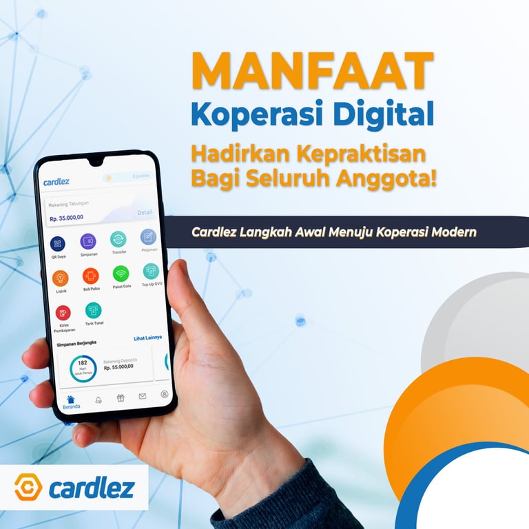 Unduh aplikasi Cardlez untuk pengalaman keuangan yang cepat, aman, dan transparan di koperasi kami.